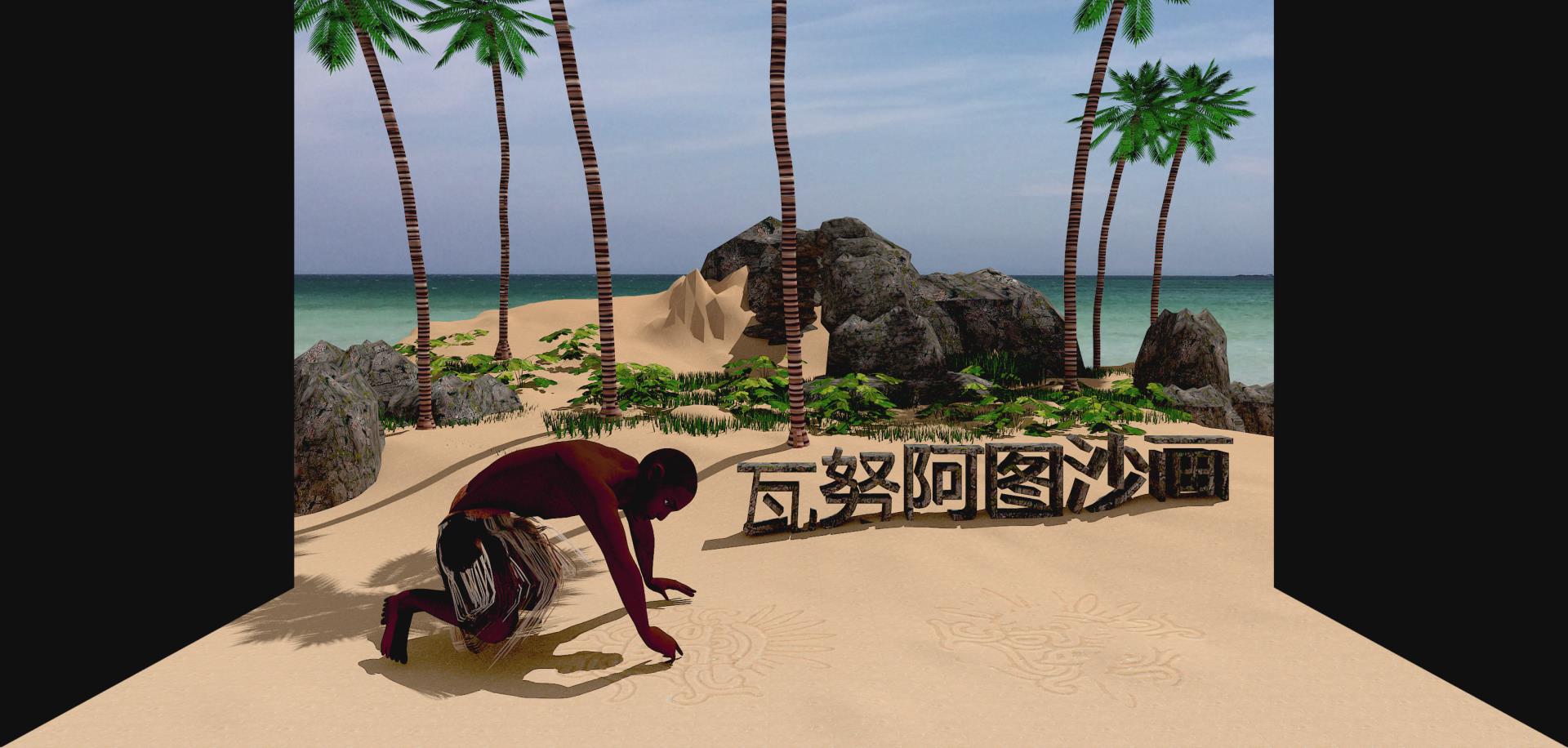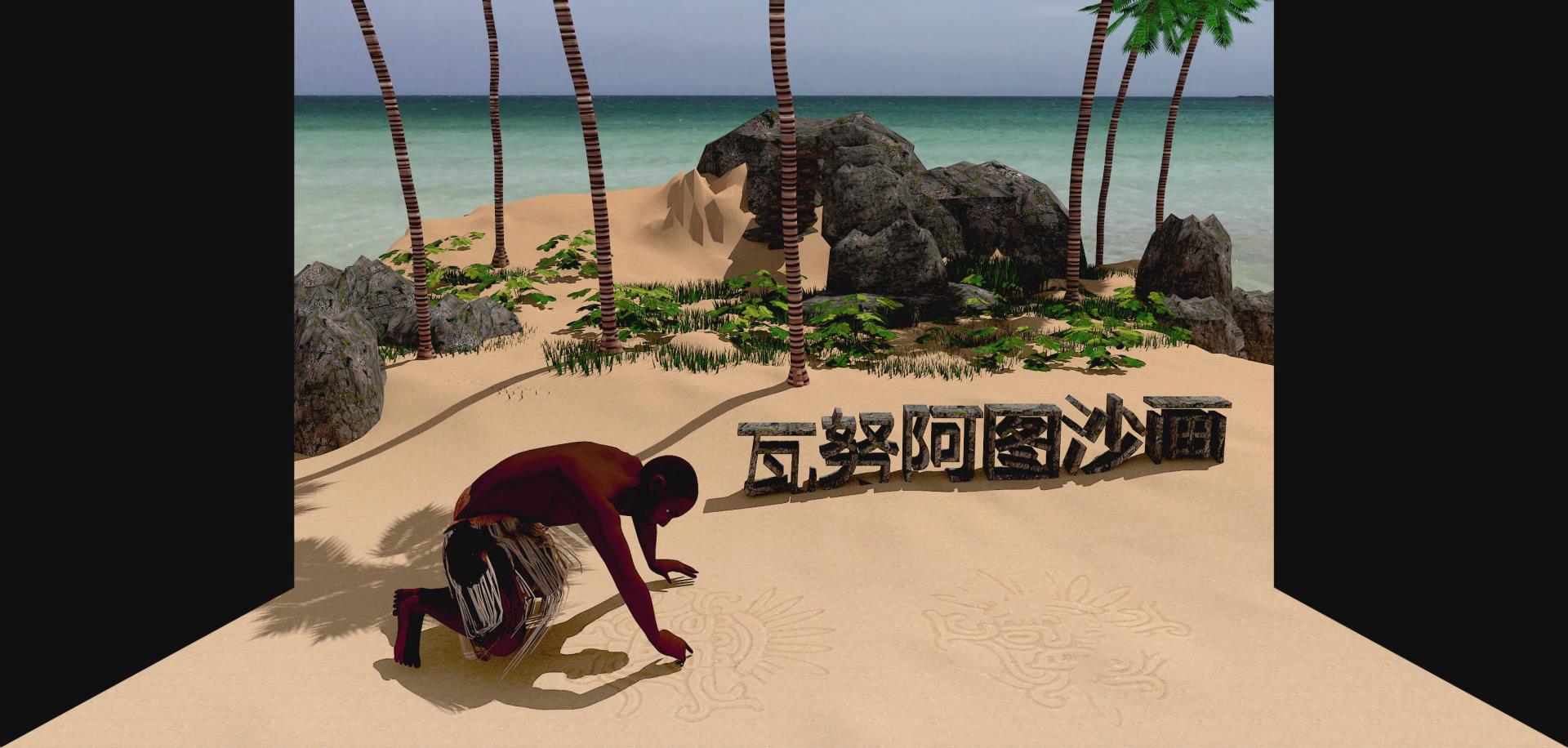 沙畫是瓦努阿圖土著人祖祖輩輩傳下來的“絕活”,較之世界其它地區的沙畫藝高一籌。所謂沙畫,就是在露天的沙地(沙灘)、撒滿火山灰或泥土的地面上,用一只手指直接勾畫出的各種圖形。通過三維立體動畫展示了瓦努阿圖沙畫的制作過程,體現了瓦努阿圖古老的藝術特點。